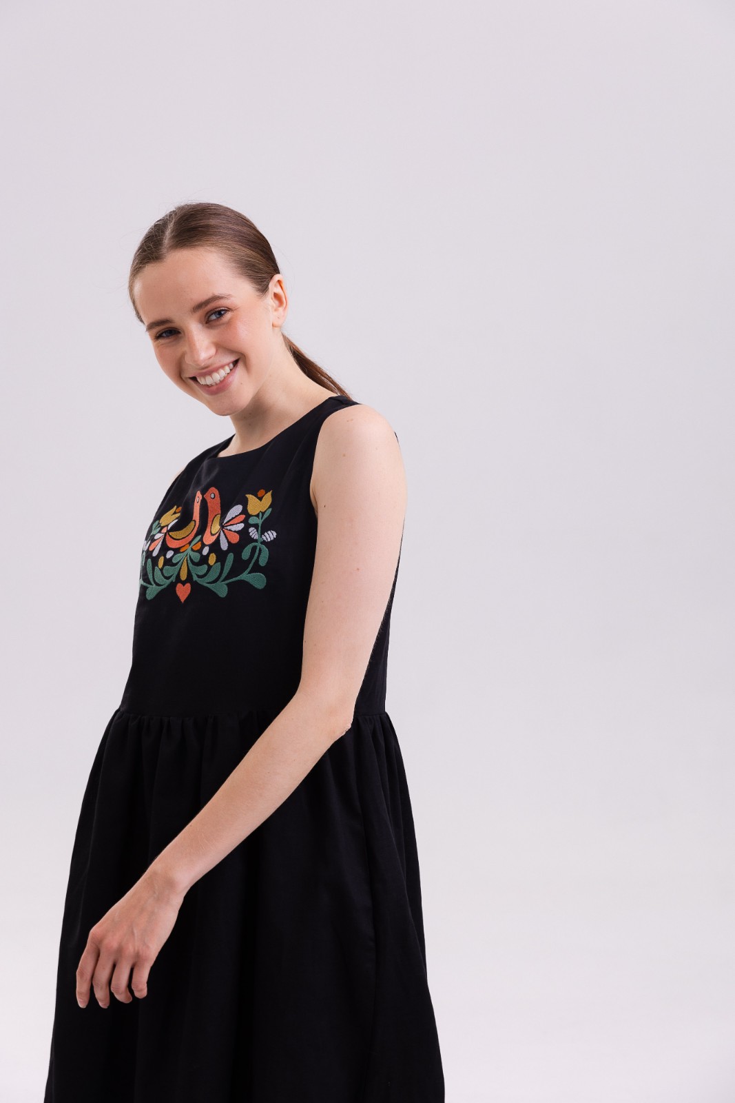 Сукня-вишиванка у чорному кольорі, виготовлена із якісного льону. Чудово підходить як в офіс, так і для відпочинку.